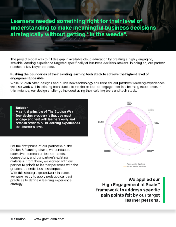 A PDF of the case study showcasing their engagement at scale with learning tools available.